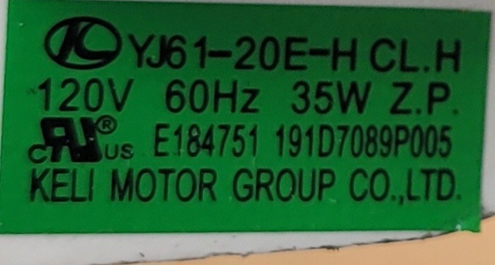 USED Genuine Double Oven GE Cooling Fan Part#191D7089P005