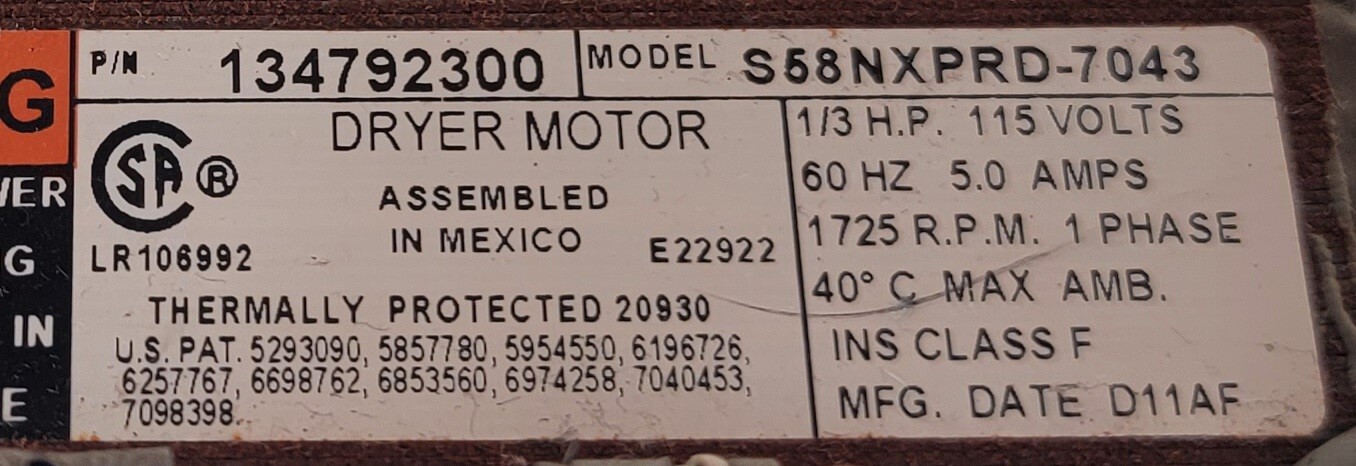 USED Genuine Dryer Electrolux Motor w/Blower Part#134792300