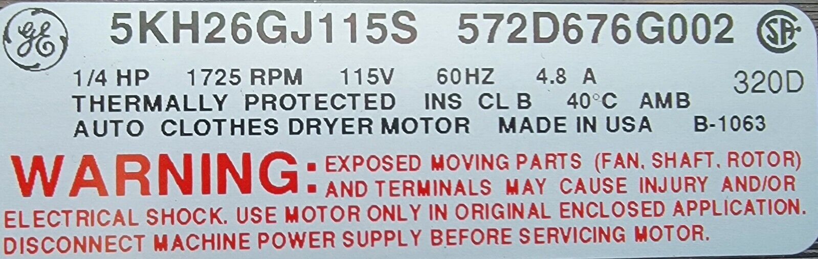USED Genuine Dryer GE Dryer Motor Part#572D676G002