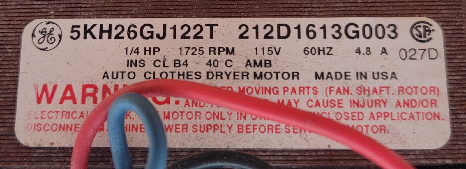 USED Genuine Dryer GE Motor Part#212D1613G003