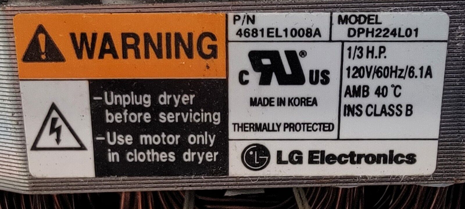 USED Genuine Dryer LG Motor w/Blower Part#4681EL1008A