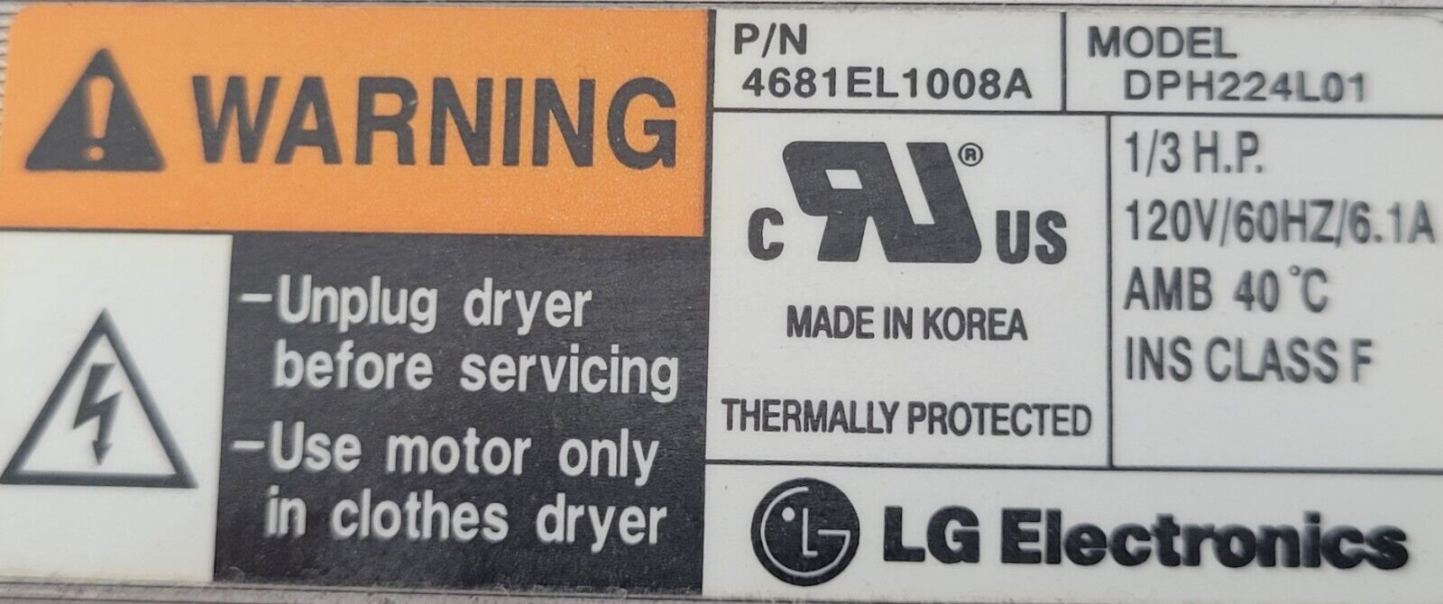 USED Genuine Dryer LG Motor w/Blower Part#4681EL1008A