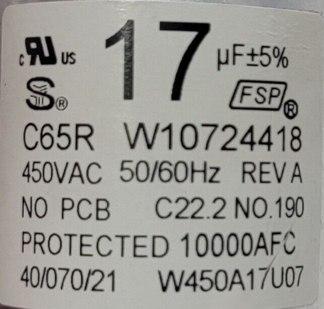 USED Genuine Dryer Whirlpool Capacitor Part#W10724418