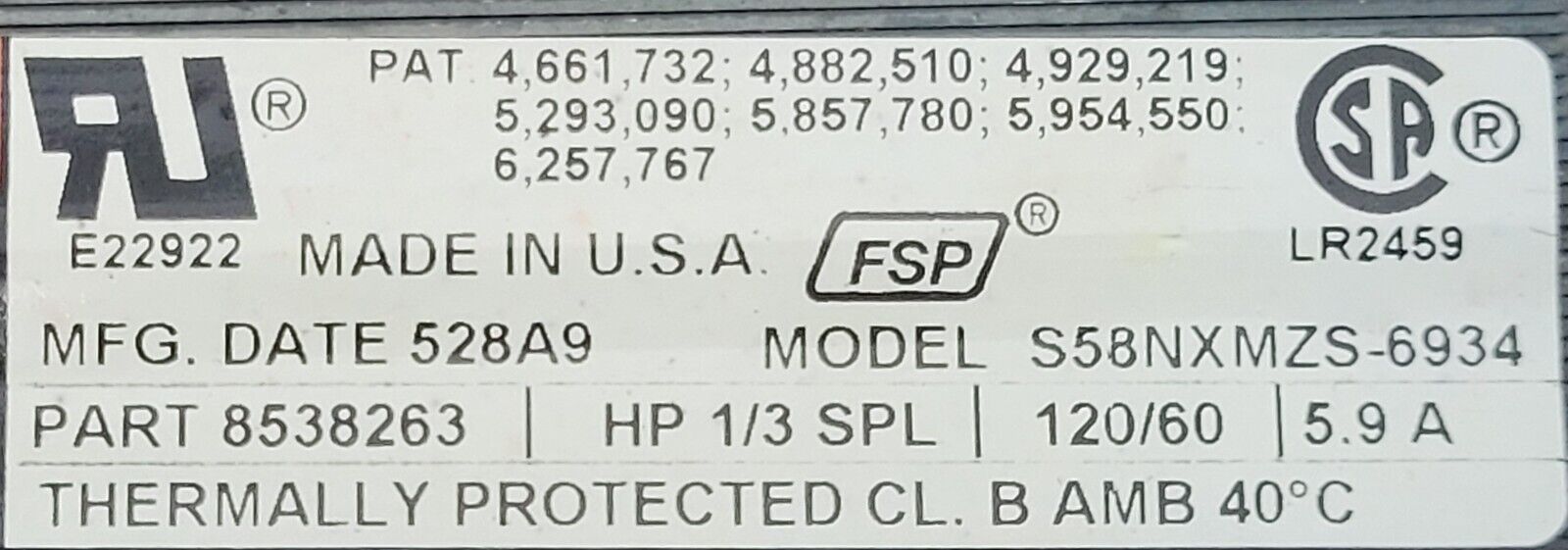 USED Genuine Dryer Whirlpool Motor w/Blower Part#8538263