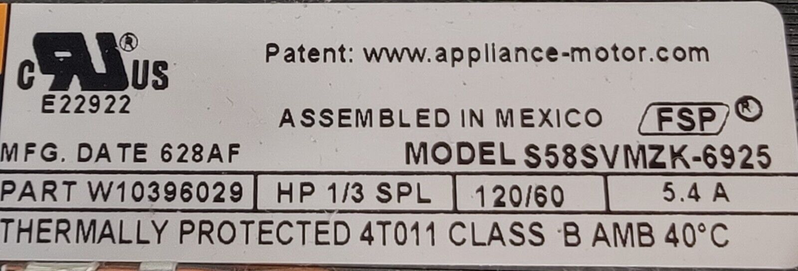 USED Genuine Dryer Whirlpool Motor w/Blower Part#W10396029