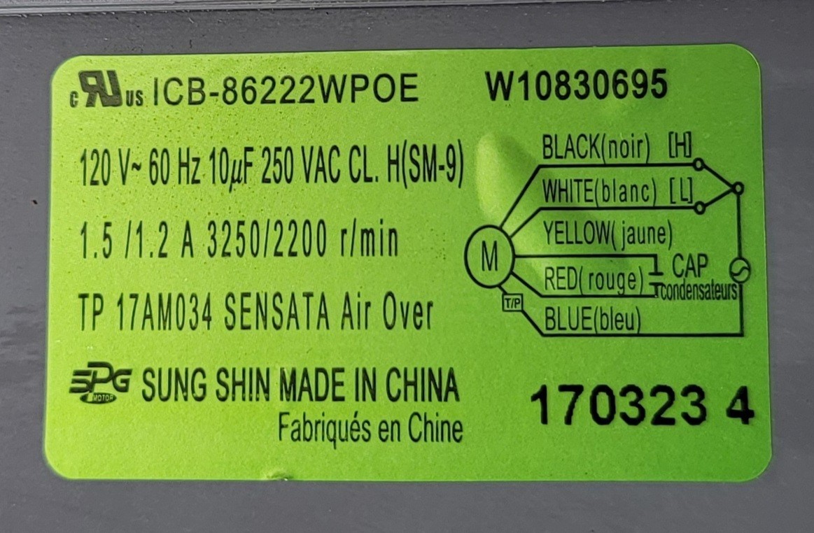USED Genuine Microwave Whirlpool Blower Fan Motor Part#W10830695