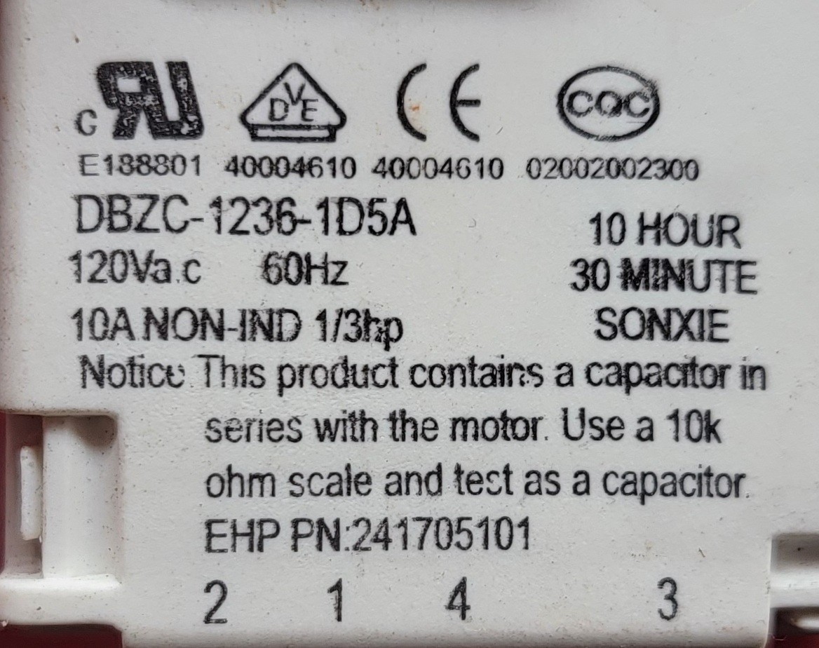 USED Genuine Refrigerator Frigidaire Defrost Timer Part#241705101