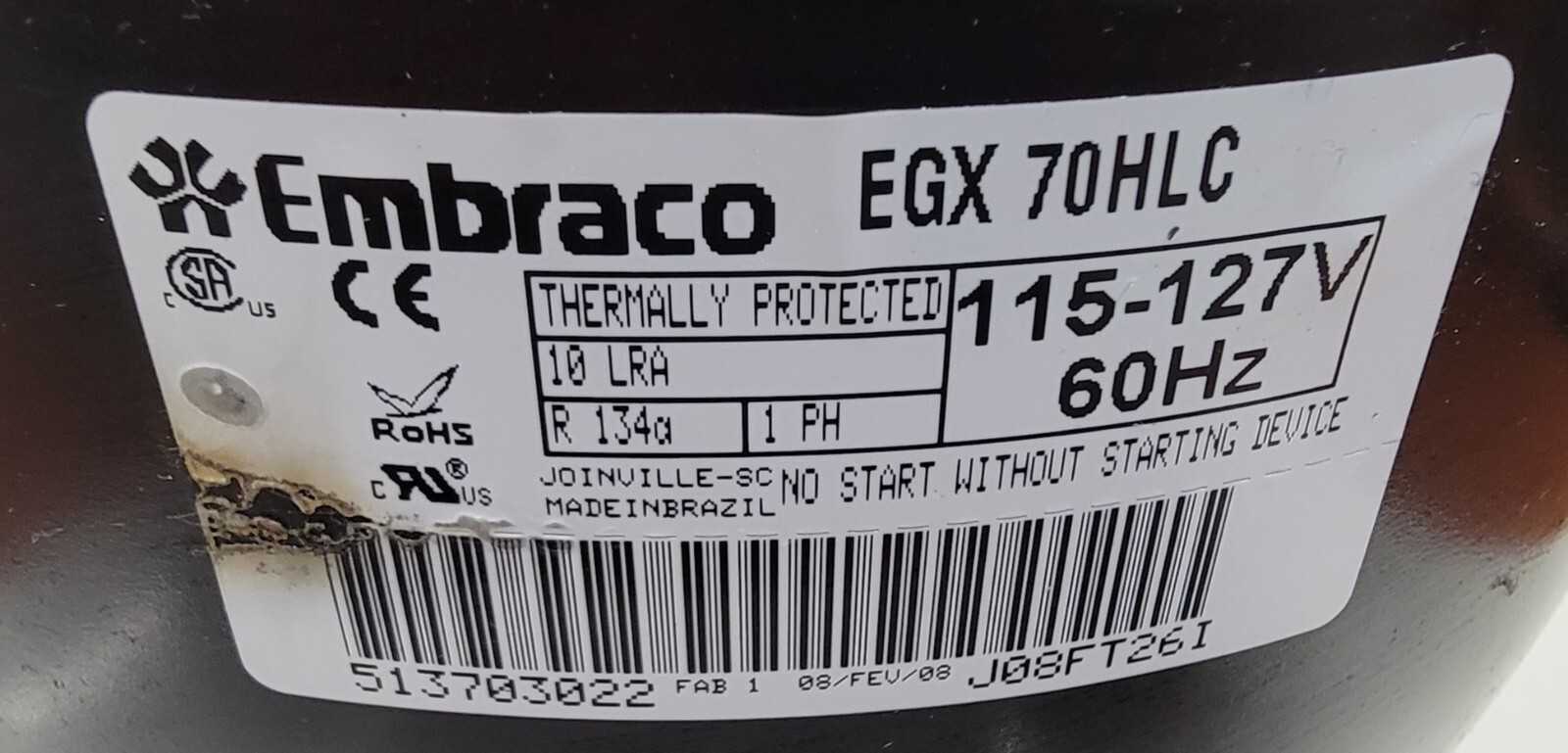 USED Genuine Refrigerator GE Compressor Part#513703022 EGX 70HLC