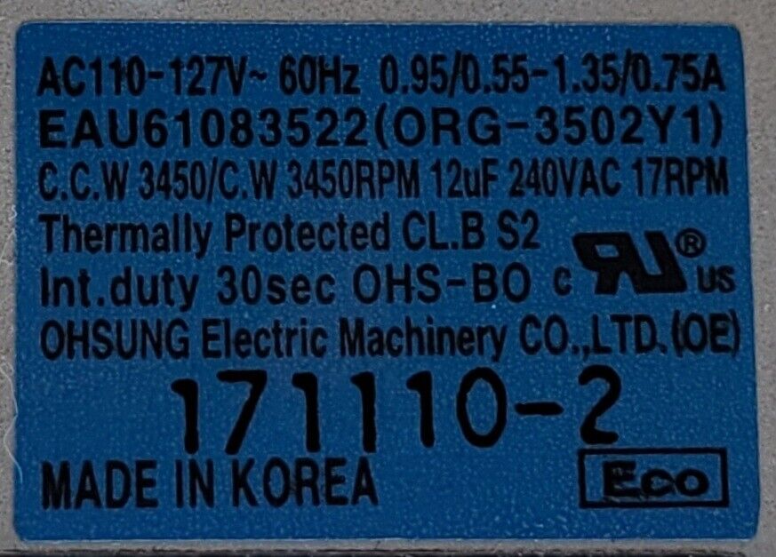 USED Genuine Refrigerator Kenmore Auger Motor Part#EAU61083522