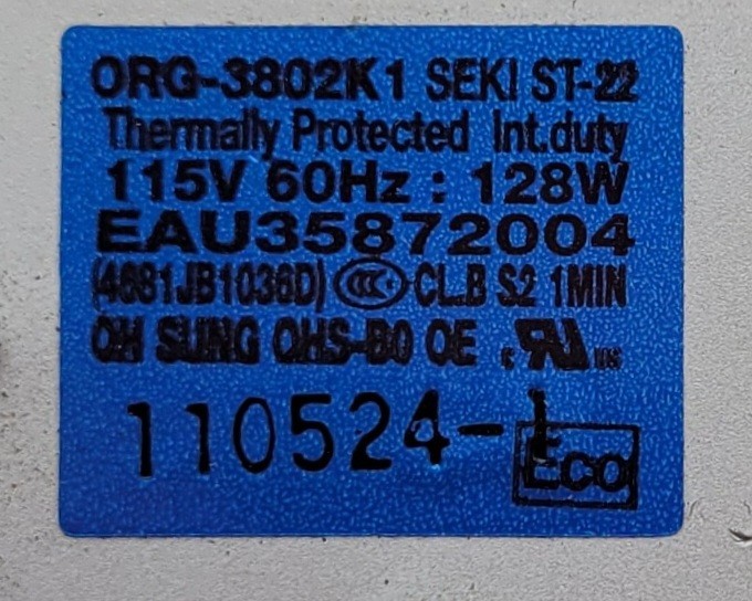 USED Genuine Refrigerator LG Auger Motor Part#EAU35872004