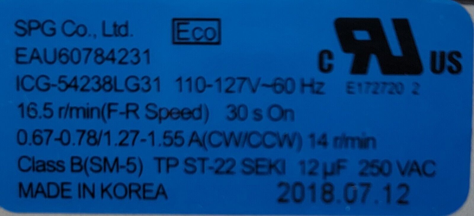 USED Genuine Refrigerator LG Auger Motor Part#EAU60784231