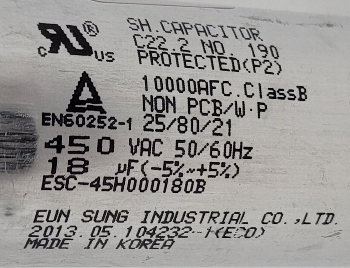 USED Genuine Refrigerator LG Capacitor Part#10000AFC ESC-45H000180B