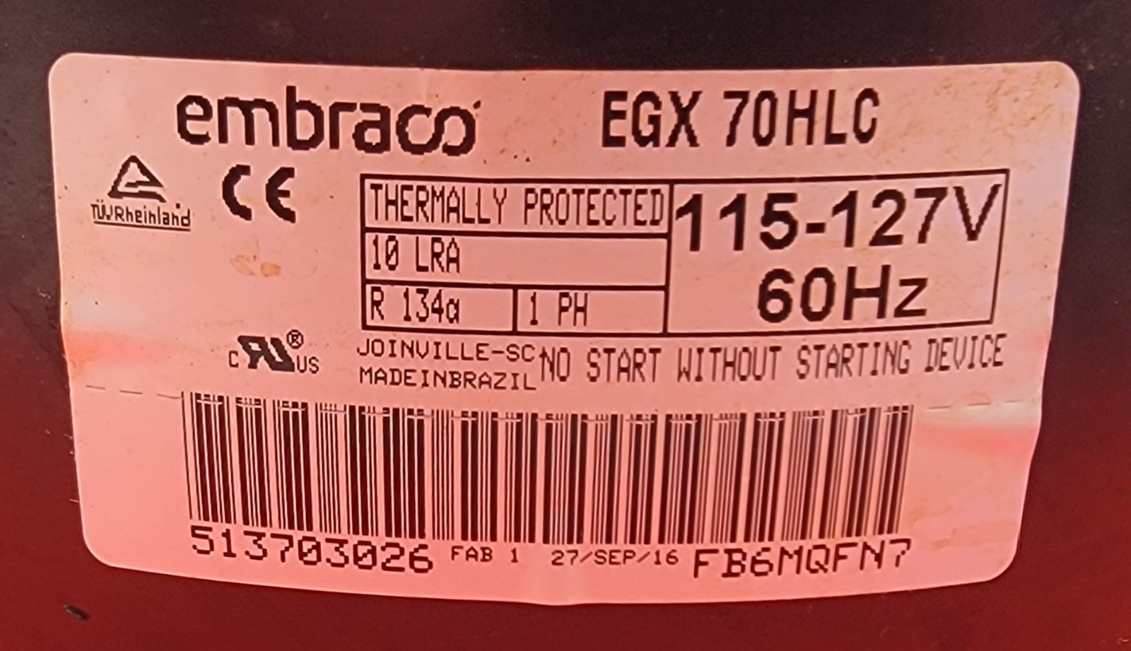 USED Genuine Refrigerator Thermador Compressor Part#513703026