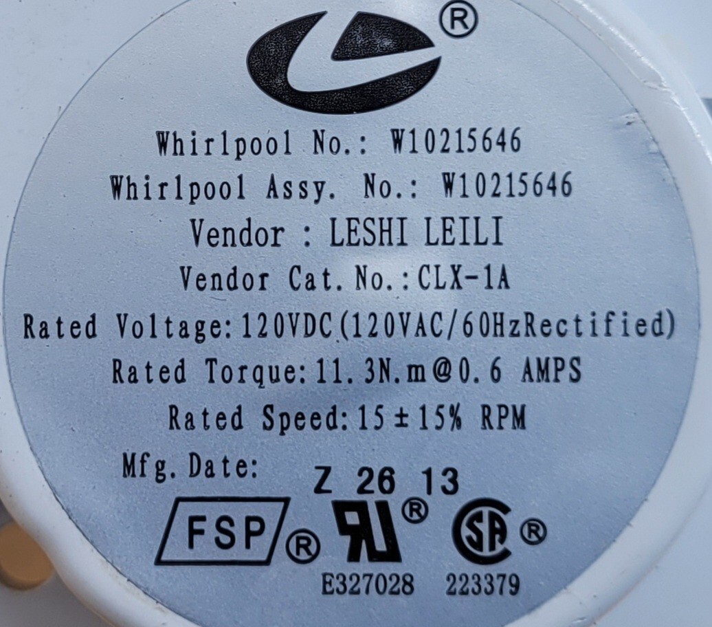 USED Genuine Refrigerator Whirlpool Auger Motor Part#W10215646