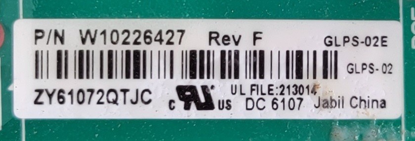 USED Genuine Refrigerator Whirlpool Control Board Part#W10226427