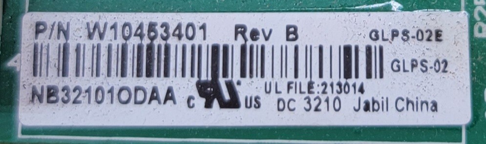 USED Genuine Refrigerator Whirlpool Control Board Part#W10453401