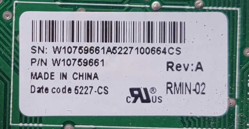 USED Genuine Refrigerator Whirlpool Control Board Part#W10759661