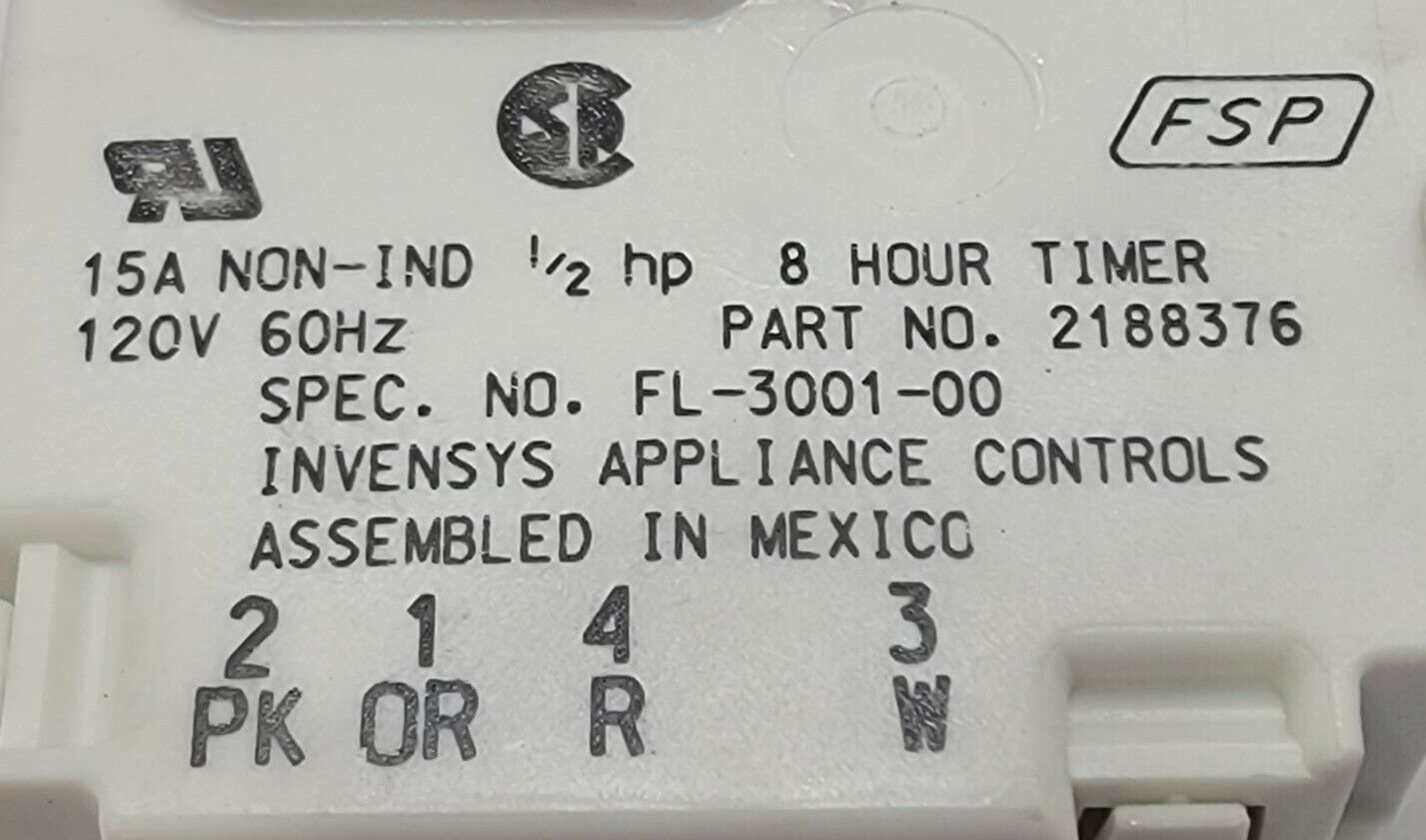 USED Genuine Refrigerator Whirlpool Defrost Timer Part#2188376