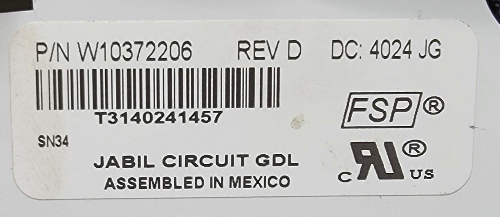 USED Genuine Refrigerator Whirlpool Display Control Board Part#W10372206