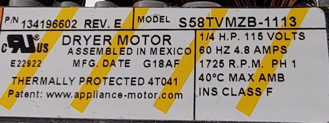 USED Genuine Washer/Dryer Frigidaire Motor w/Blower Part#134196602