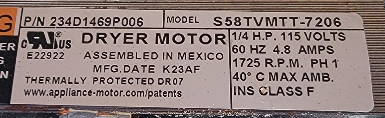 USED Genuine Washer/Dryer GE Motor Part#234D1469P001