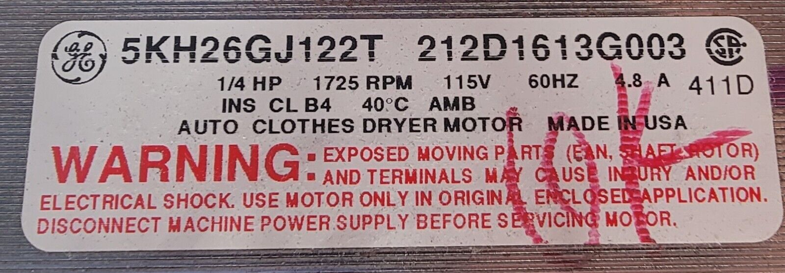 USED Genuine Washer/Dryer GE Motor w/Blower Part#212D1613G003