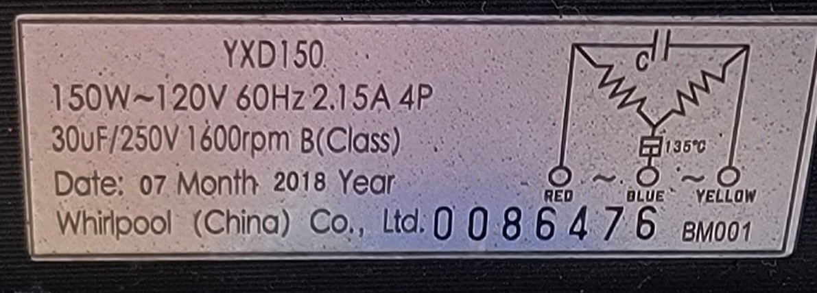 USED Genuine Washer/Dryer Whirlpool Drive Motor Part#0086476 W11178896