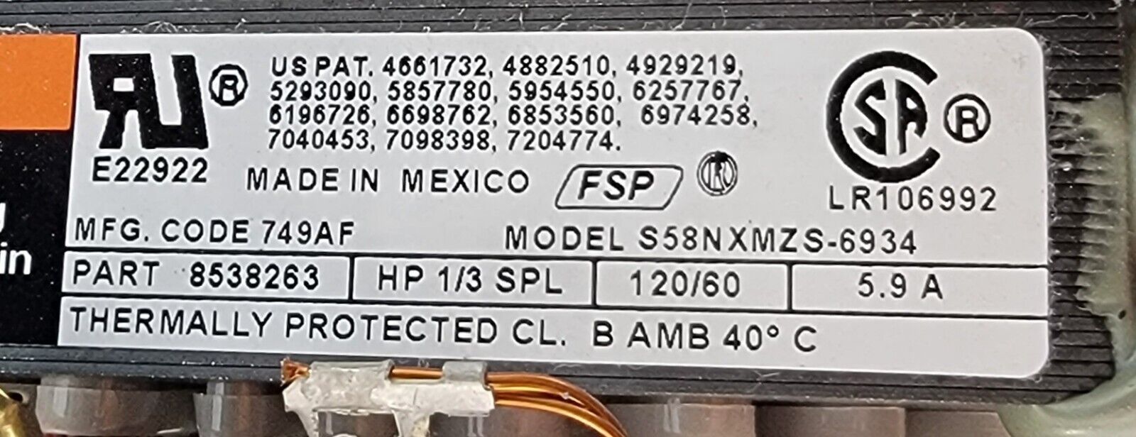 USED Genuine Washer/Dryer Whirlpool Motor w/Blower Part#8538263