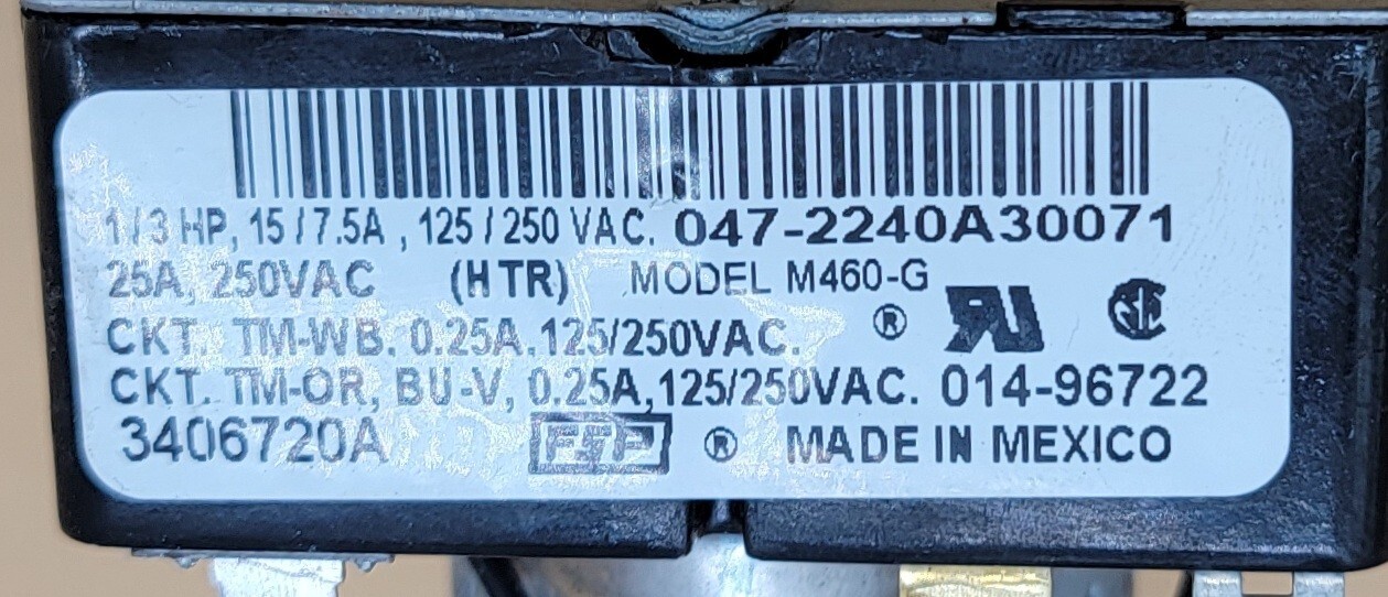 USED Genuine Washer/Dryer Whirlpool Timer Part#3406720A