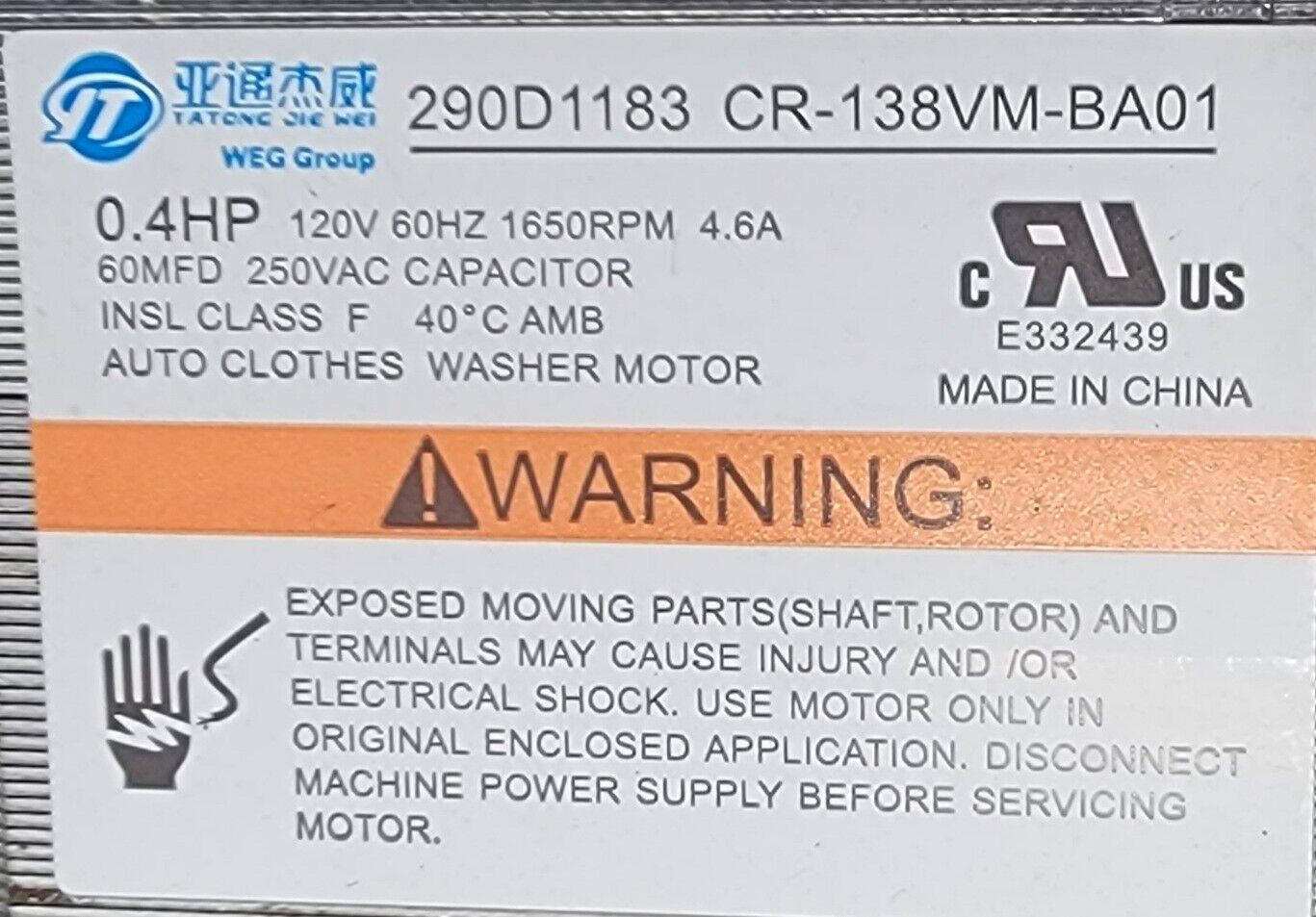 USED Genuine Washer GE Drive Motor Part#290D1183