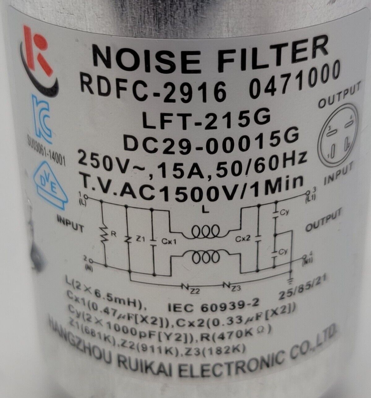 USED Genuine Washer Samsung Noise Filter Part#DC29-00015G