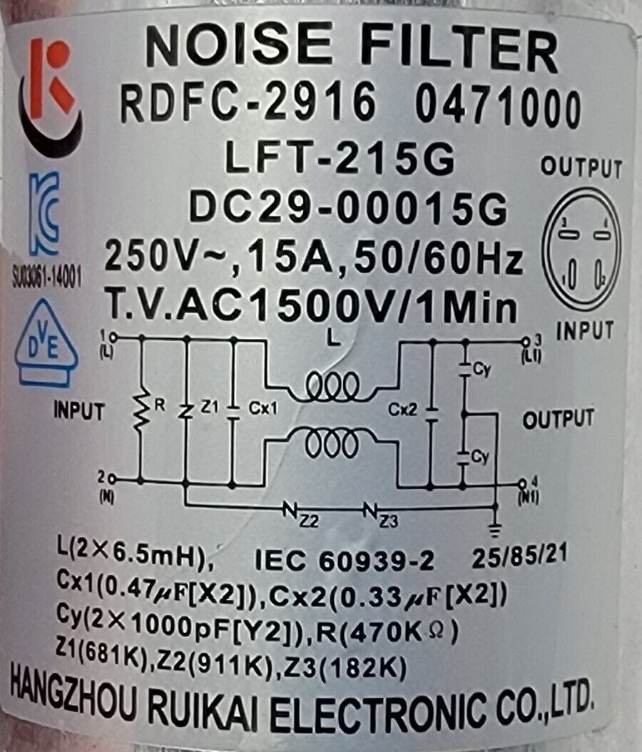 USED Genuine Washer Samsung Noise Filter Part#DC29-00015G