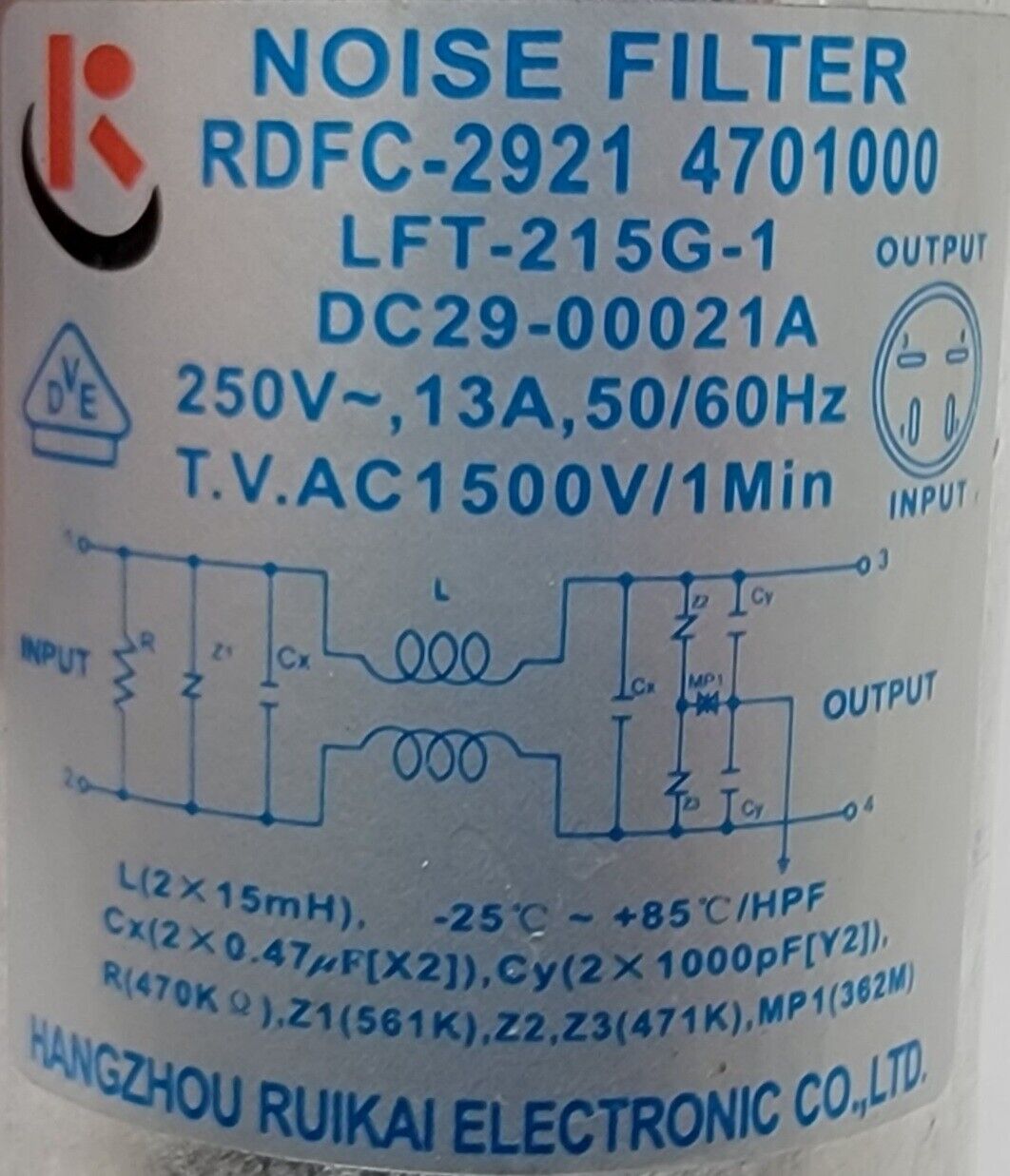 USED Genuine Washer Samsung Noise Filter Part#DC29-00021A