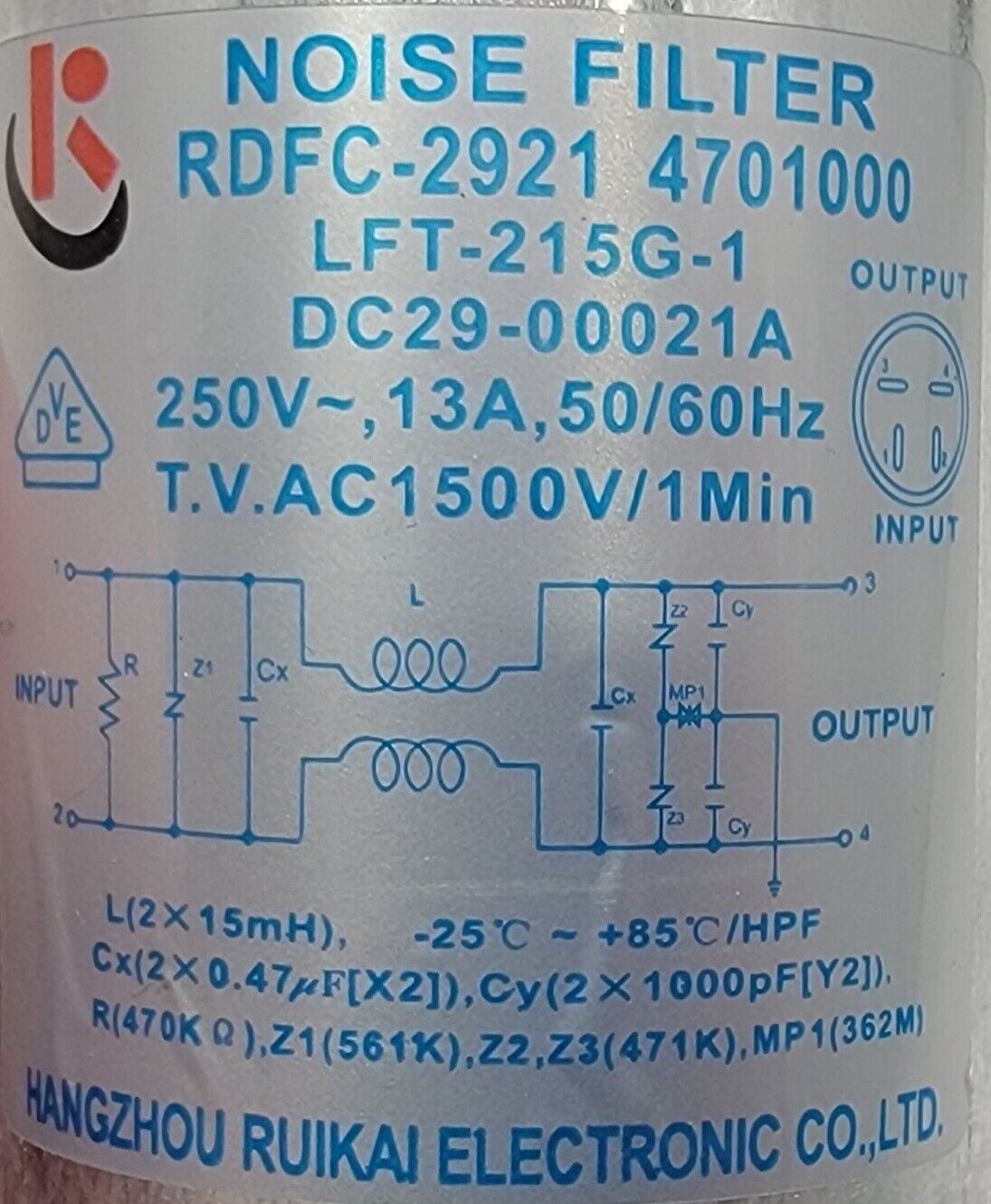 USED Genuine Washer Samsung Noise Filter Part#DC29-00021A