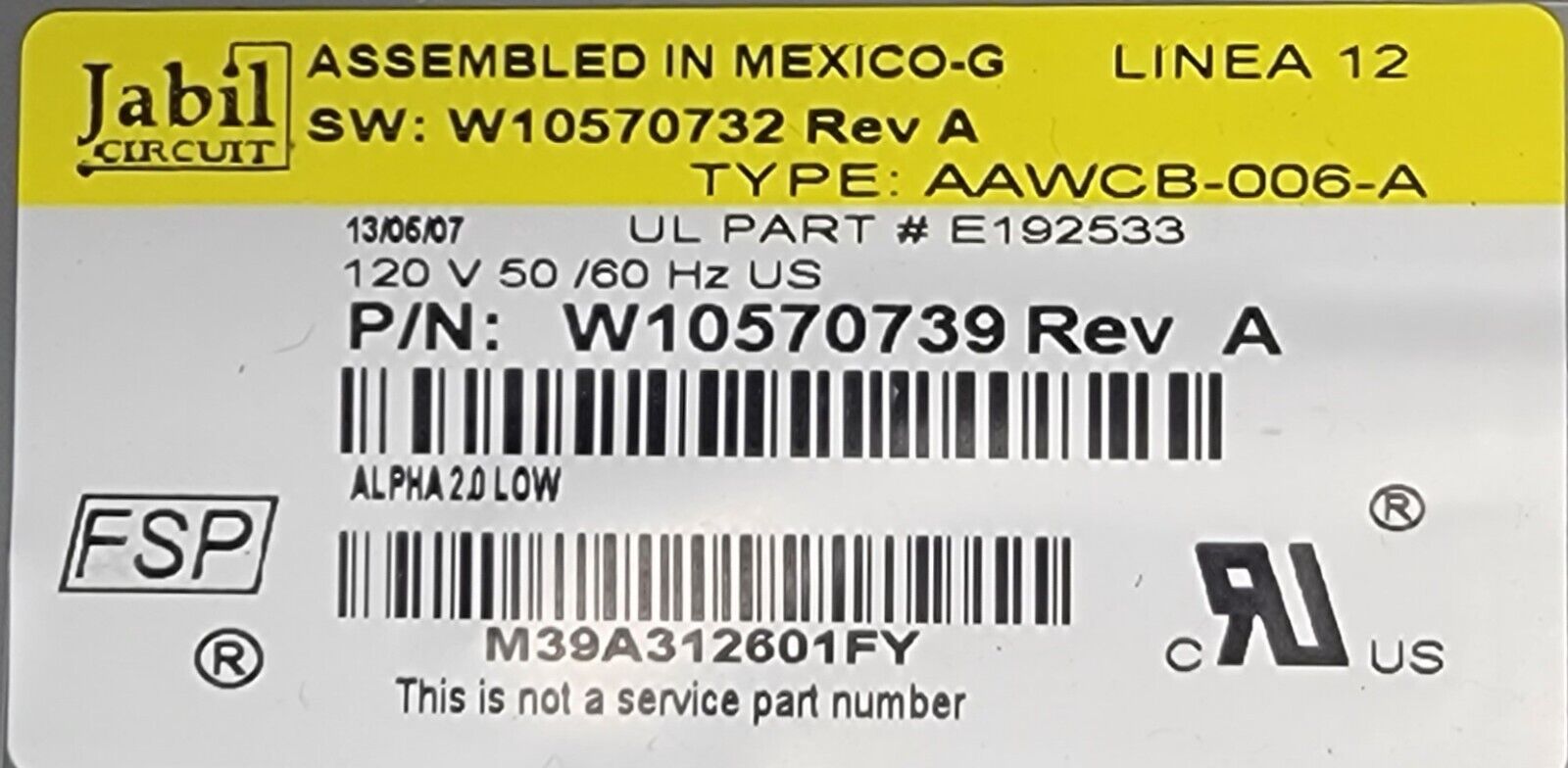 USED Genuine Washer Whirlpool Control Board Part#W10570739