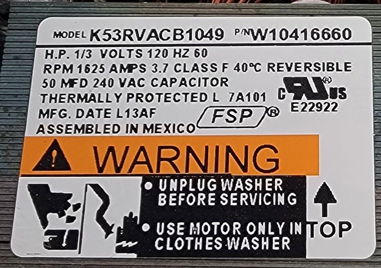 USED Genuine Washer Whirlpool Drive Motor Part#W10416660