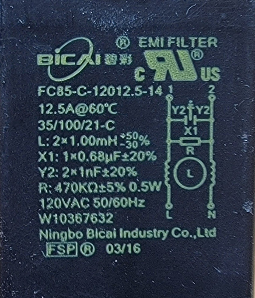 USED Genuine Washer Whirlpool Noise Filter Part#W10367632
